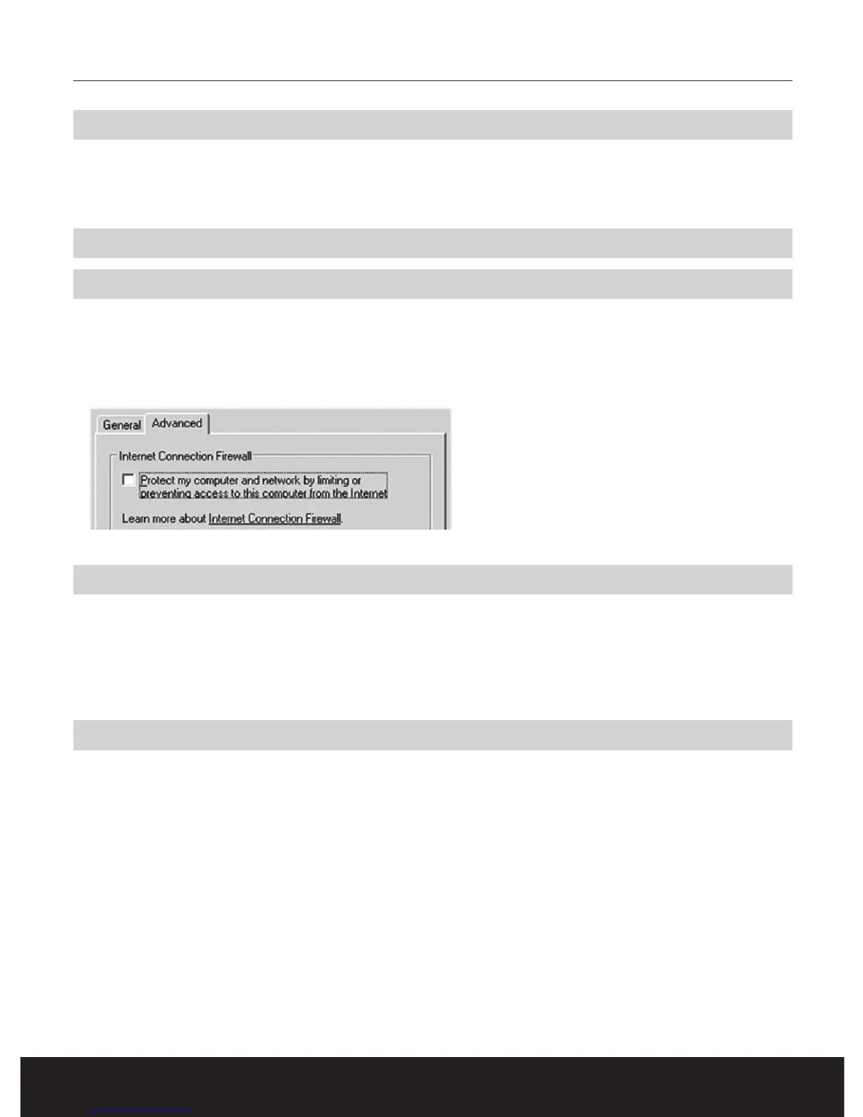if any active. In Windows XP, check the network card settings. Switch off the Firewall option. Go to: “Configuration screen” and select “Network
