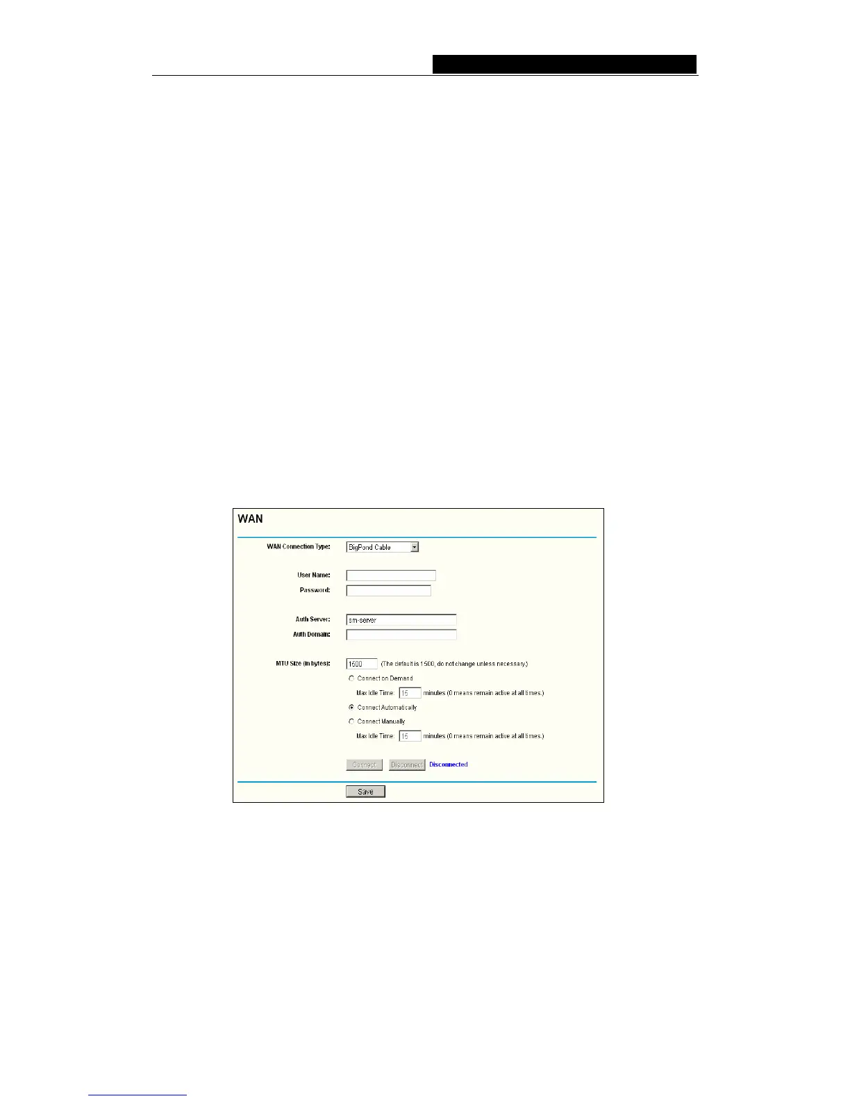 4. If you choose Bigpond, you should enter the following parameters (figure 5-8):