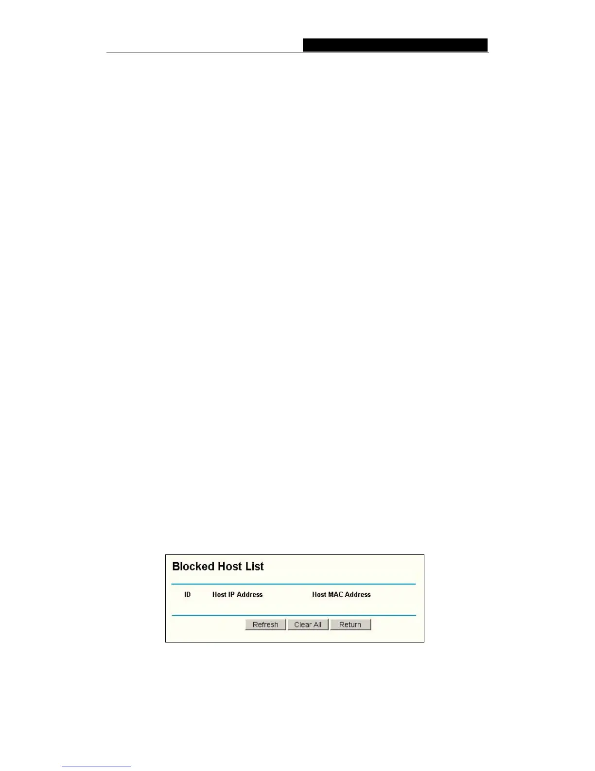 This page shows Host IP Address and Host MAC Address for each host blocked by
