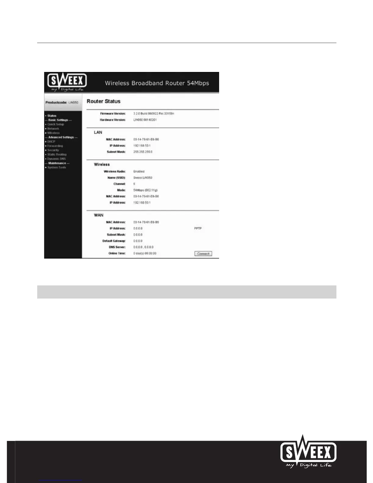 does not have an Internet connection, setting the router would be pointless. After all, the modem establishes the Internet connection and the Sweex