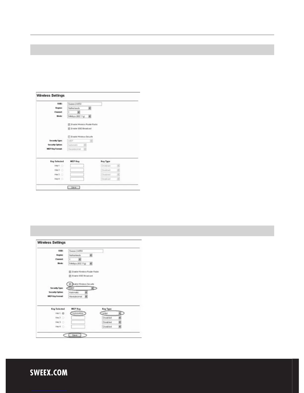 We always recommend entering these settings with a computer connected to the Sweex Breedband Router by means of a cable.