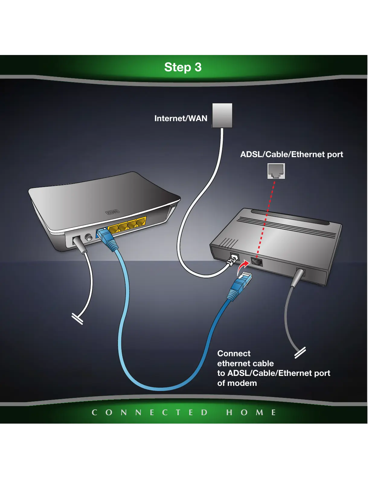 SWEEX LW160 - Step 3: Connect to Modem; Connect ethernet cable to ADSL;Cable;Ethernet port of modem