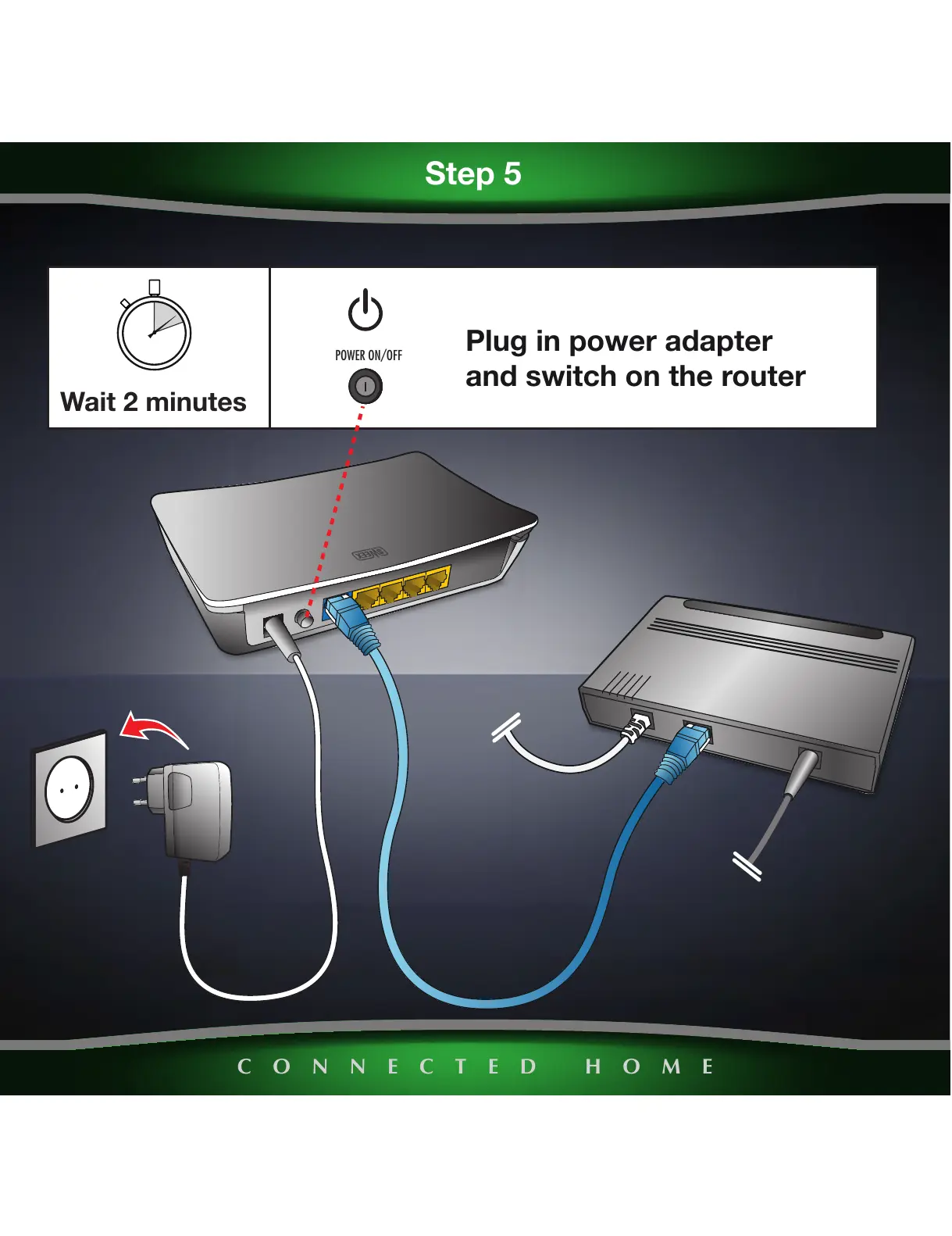 and switch on the router