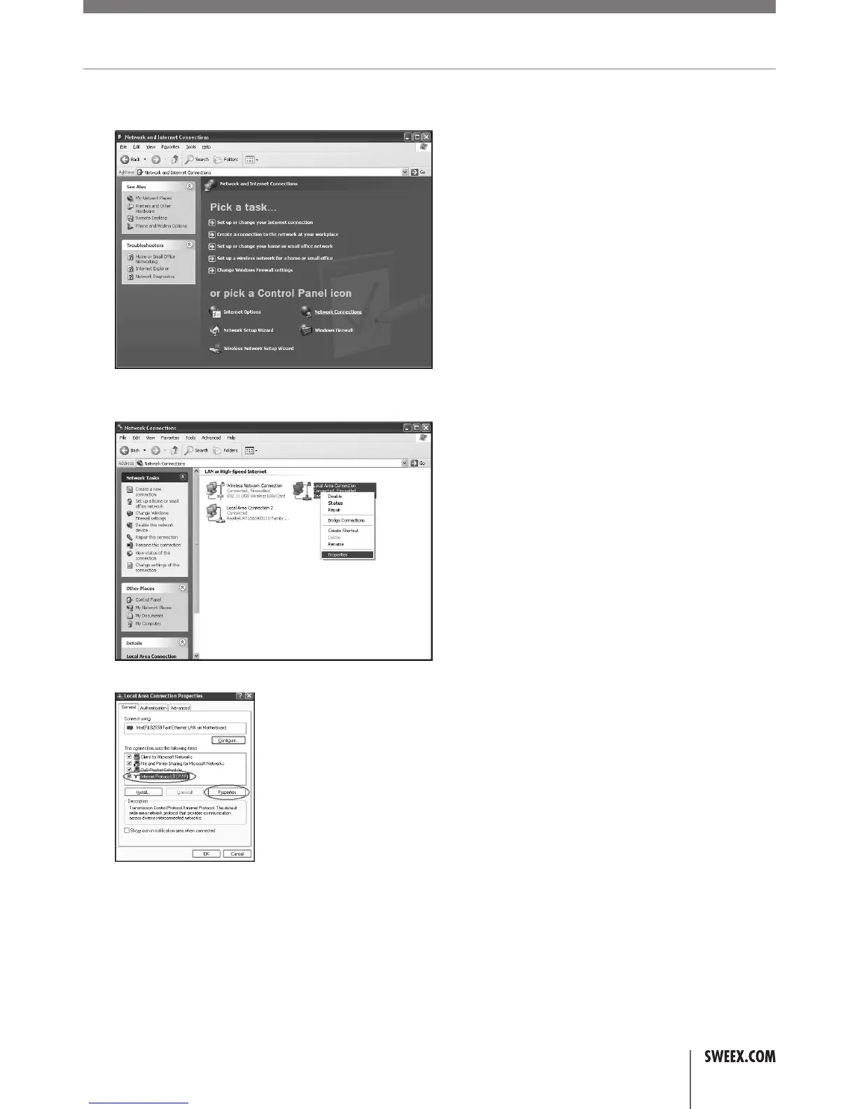 3. RightclickthefirstconnectedLANorHigh-SpeedInternetConnection,inthisexamplethe“LocalAreaConnection”,andclick“Properties”from