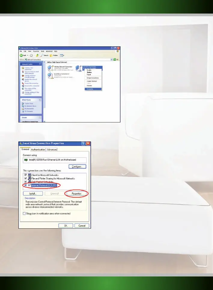 3. Right click the first connected LAN or High-Speed Internet Connection, in this example the “Local Area Connection”, and click “Properties”