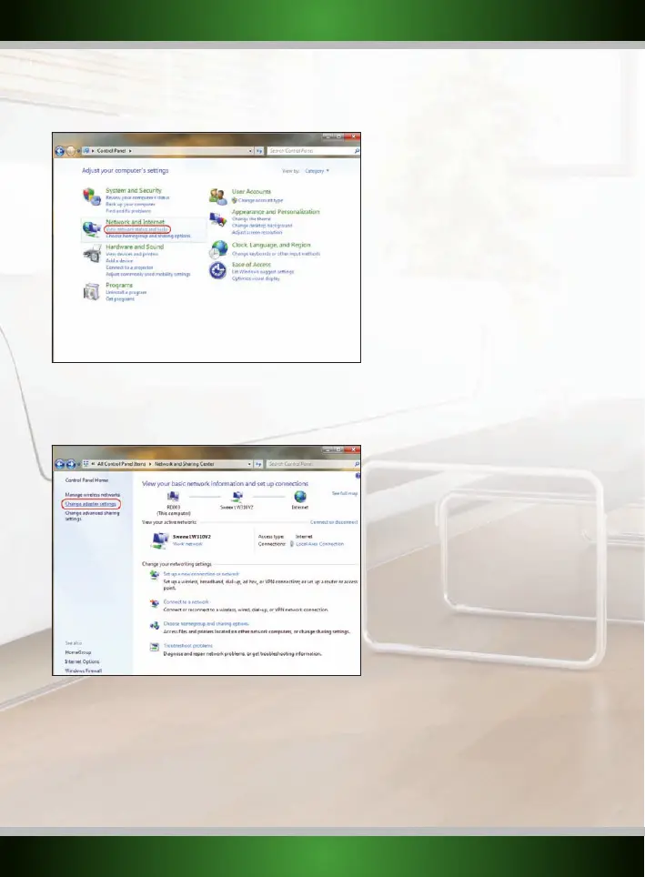 In the Network and Sharing Center, click “Change adapter settings” in the bar on the left side: