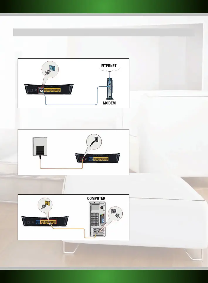 2. Use the included network cable to connect your modem to the blue WAN port of the router. Do not connect any computers yet!
