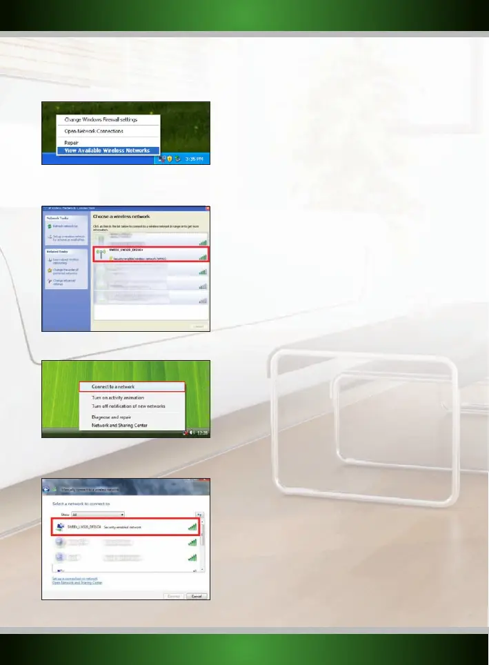 • Windows XP: Right click on your wireless adapter’s icon at the bottom right of your screen and click “View Available Wireless Networks”: