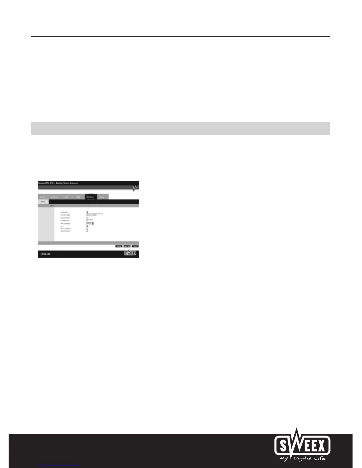 The standard SSID is “Sweex MO250”. You can change this under “Primary SSID”. We recommend not changing this so you can always recognise