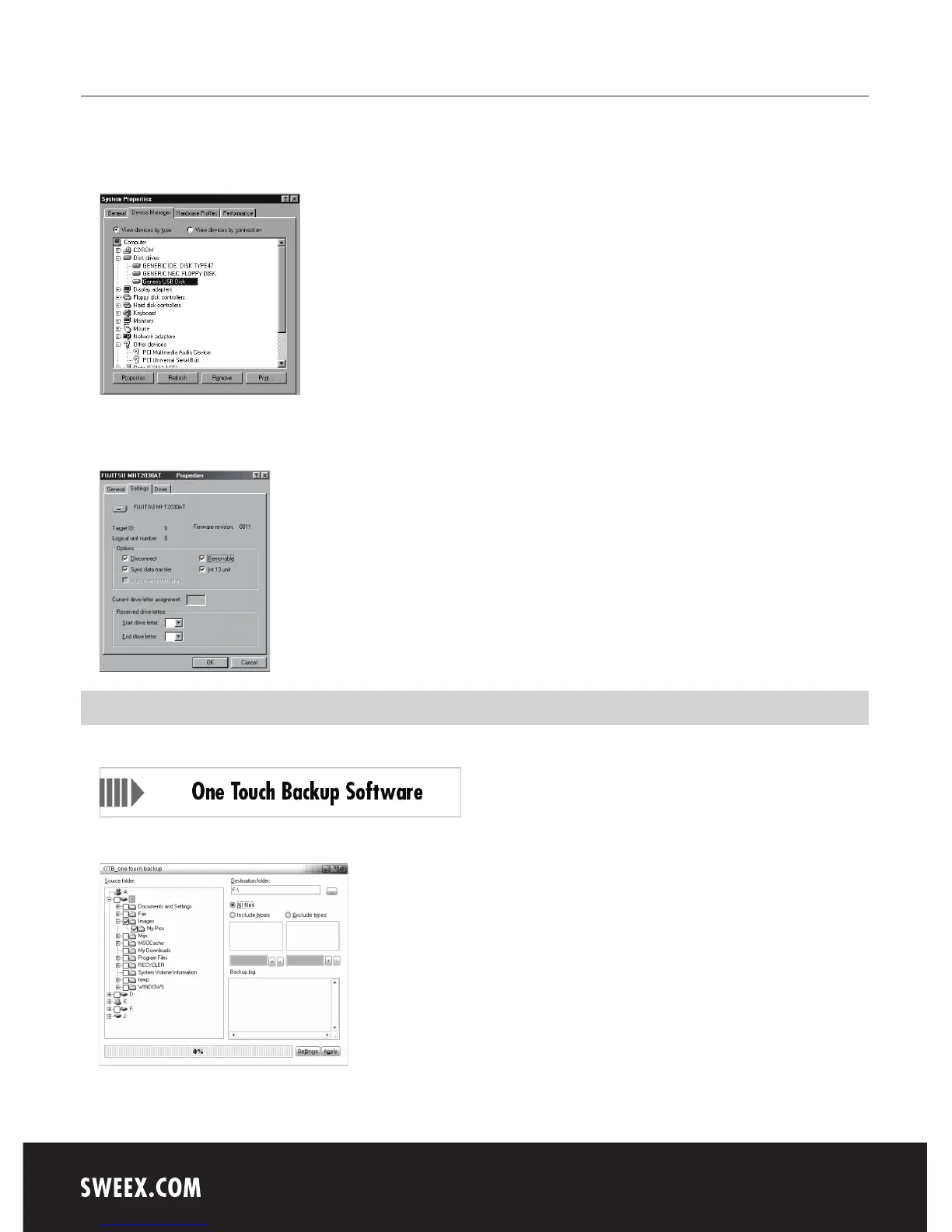 If you wish to use the One Touch Back-up function, put the Sweex CD-ROM in the CD-ROM player and click on "One Touch Back-up Software”.