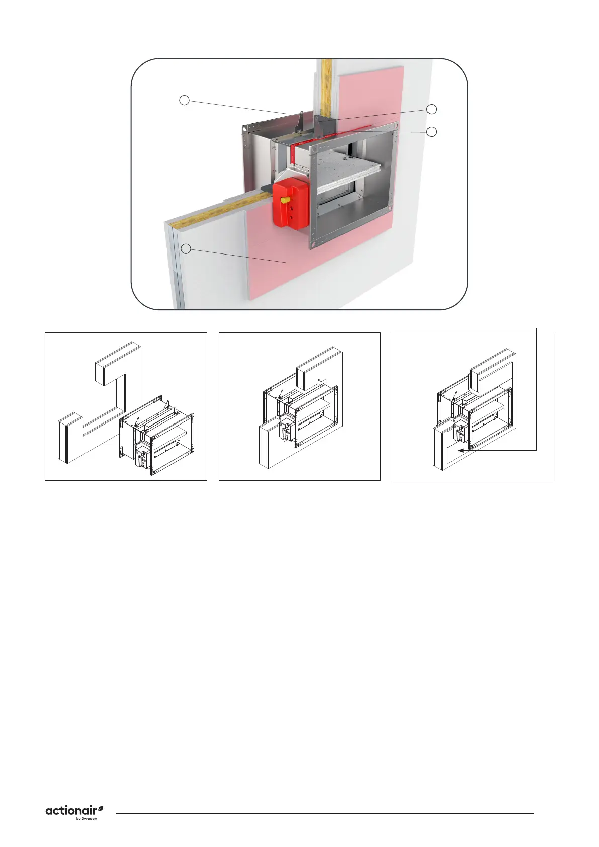 bracket (1) 90°. Place the damper in the opening up to