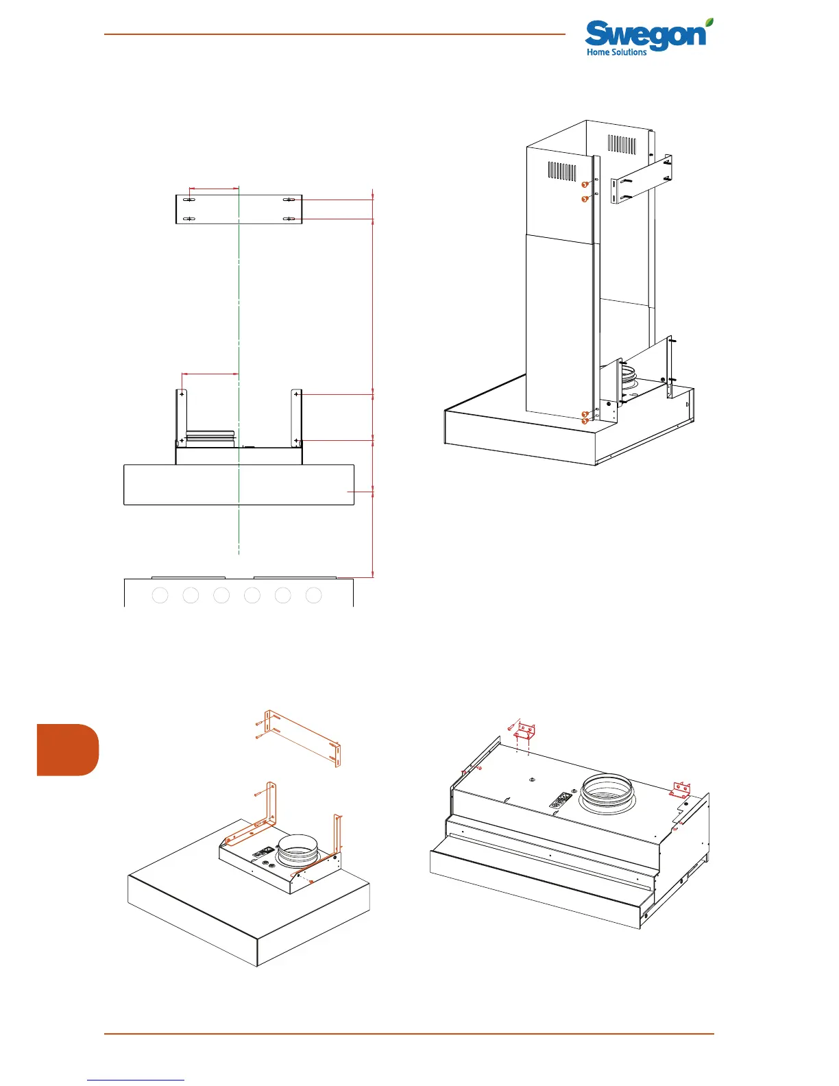 • Klargjør kjøkkenhetten for montering ved