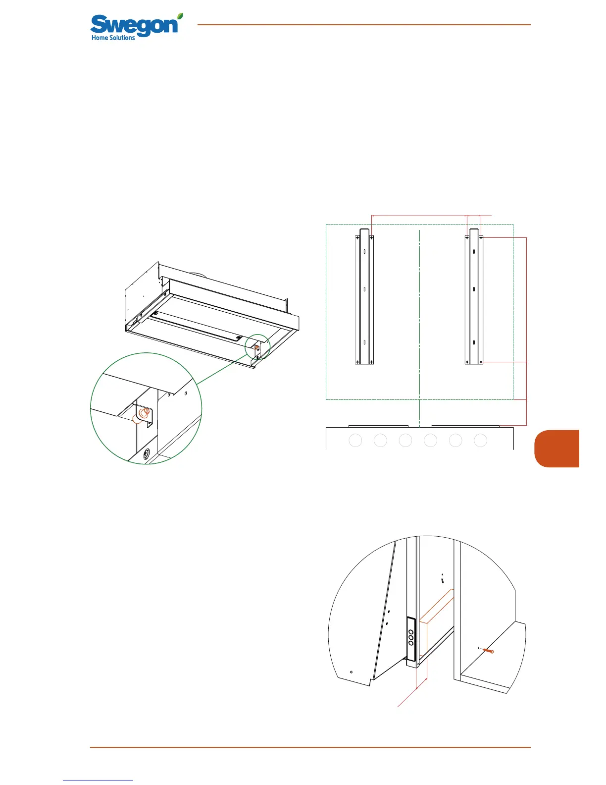 • Merkkaa lieden keskilinja seinään ja