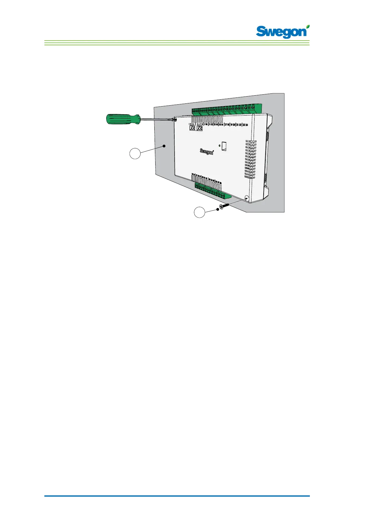 1. Secure the controller by means of screws in the upper left-hand and