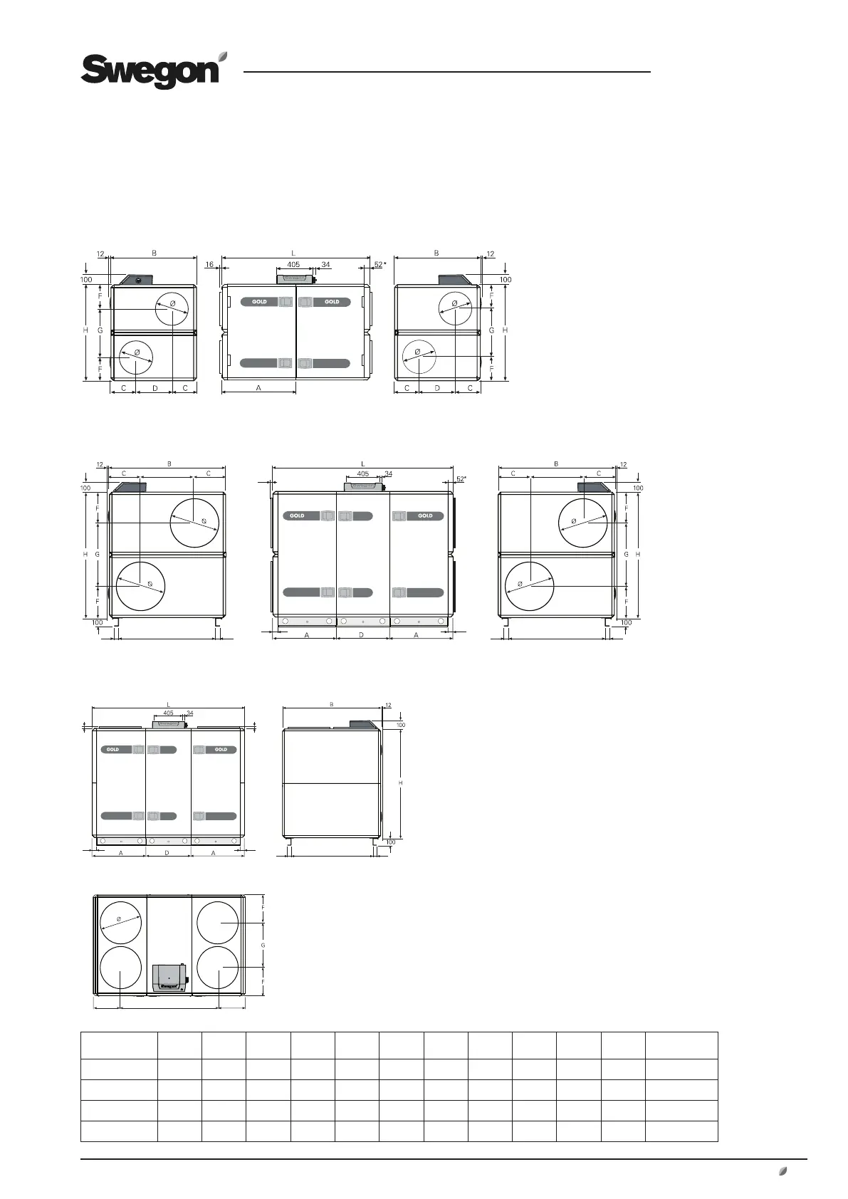 19.1 Dimensions, GOLD RX one-piece unit with rotary heat exchanger