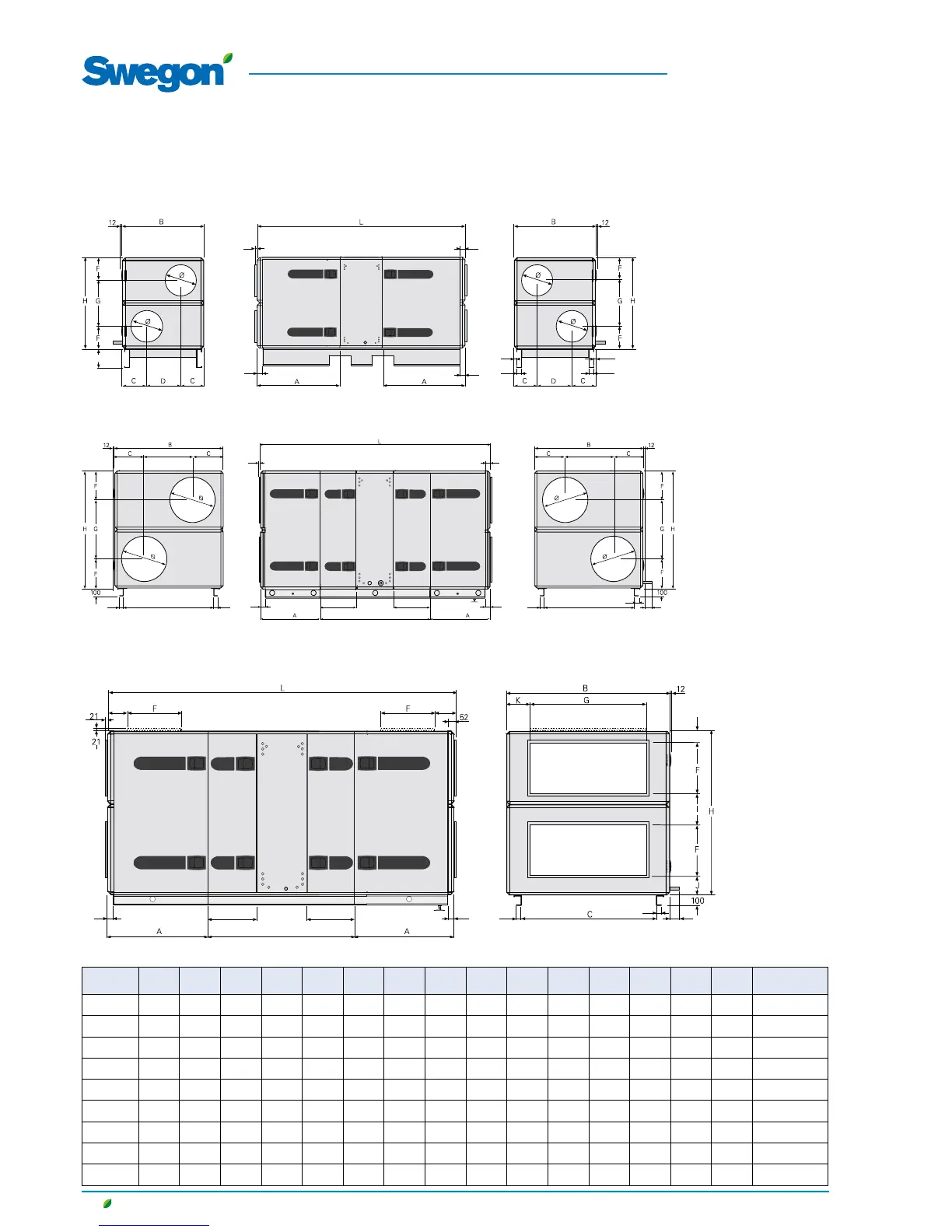 6.2 Dimensions, SILVER C PX one-piece air handling units with plate