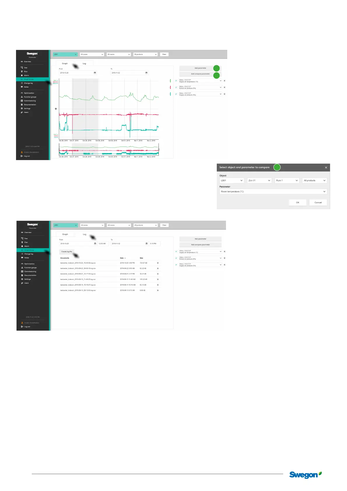 The logging function saves information from the system in SuperWISE.