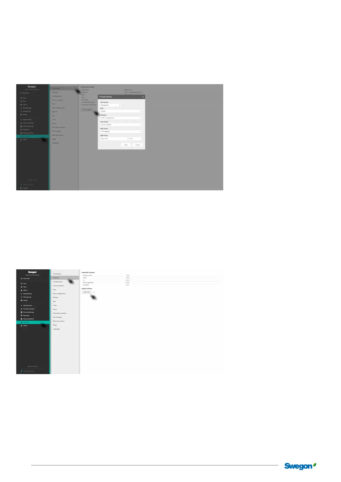 Makes it possible to adjust SuperWISE to each specic project - via the menu options: Time and date, Software, Conguration,