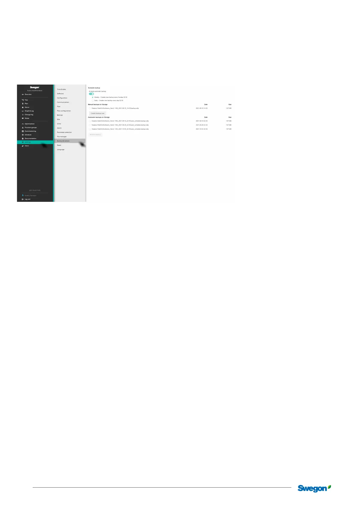 The user can manually create a backup if necessary, under Manual backup. The backup is saved on a USB memory stick and can then