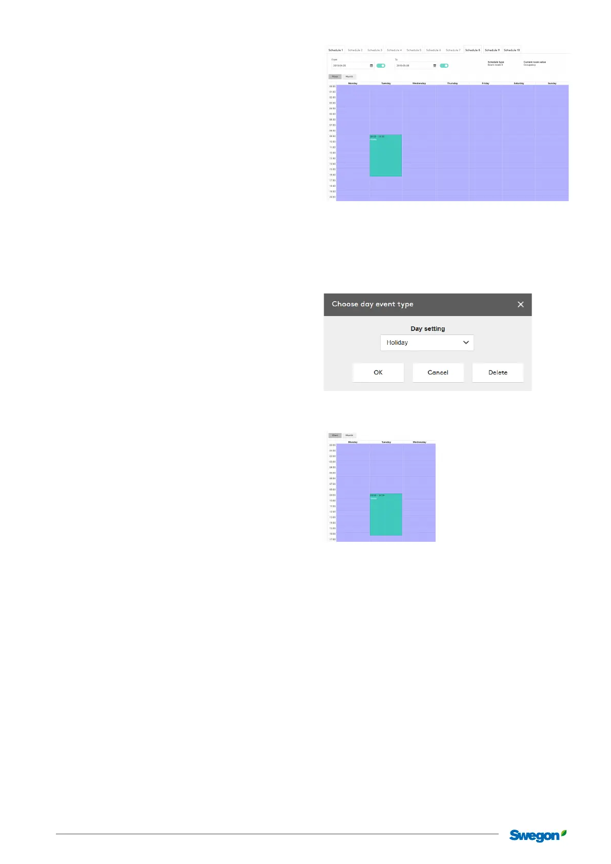 Available functions, so-called day settings, that can be sched-