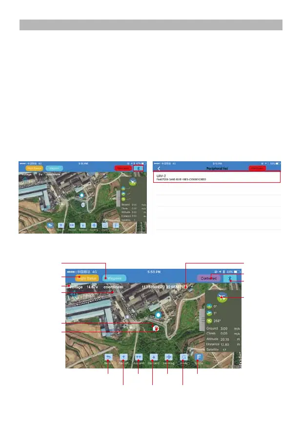 3. Run the “Swellpro Fly” APP, click the Bluetooth icon to link the device (UAV..). When it links,