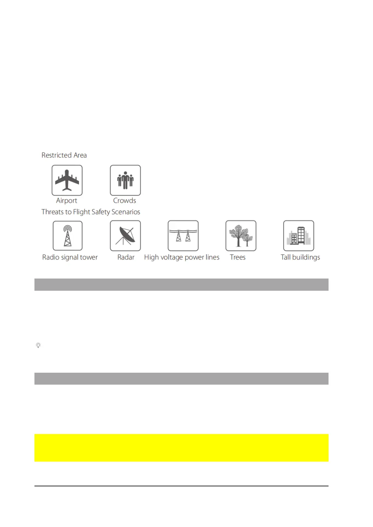 • Avoid flying near areas with high electromagnetic interference such as power lines