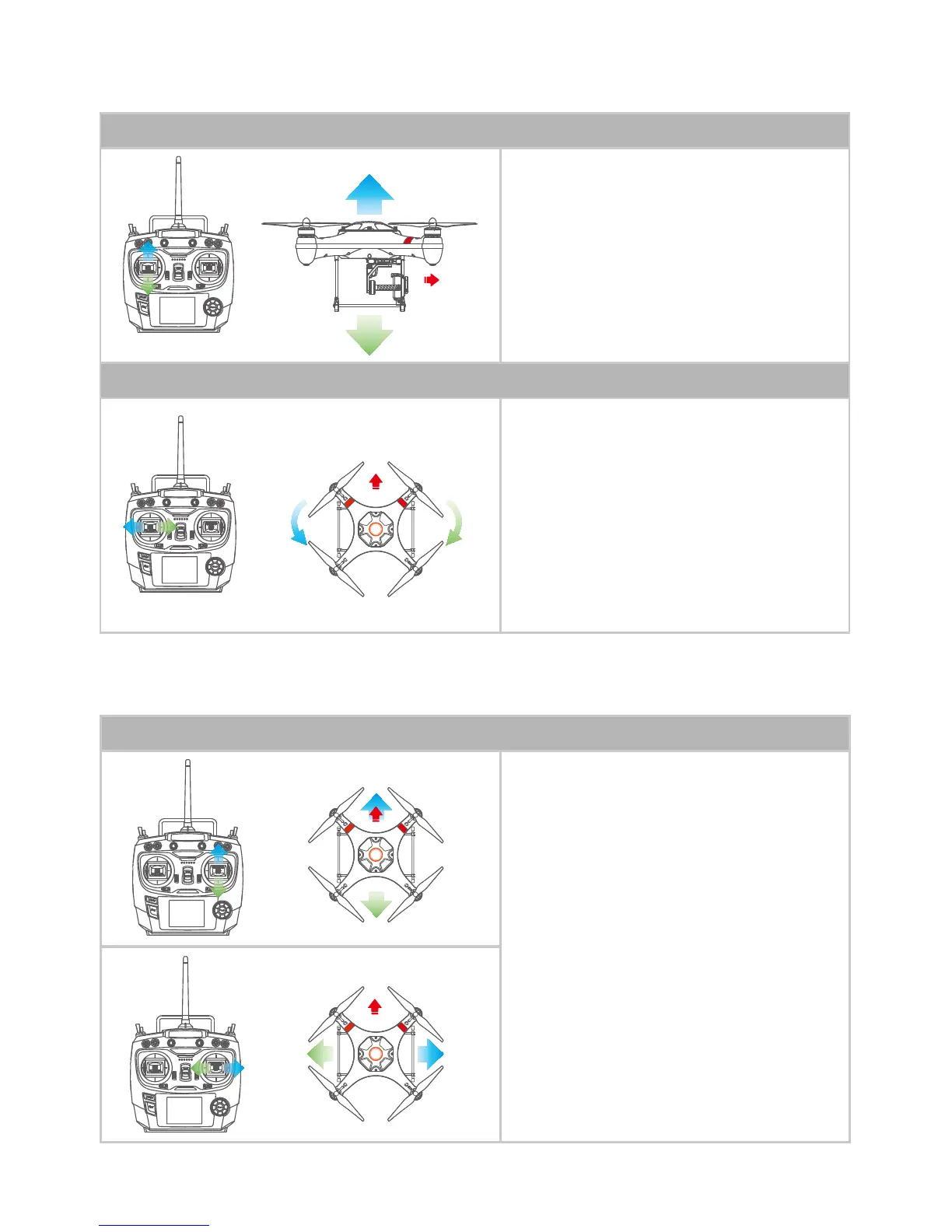 Throttle joystick (from Down to Up controls the ying height)