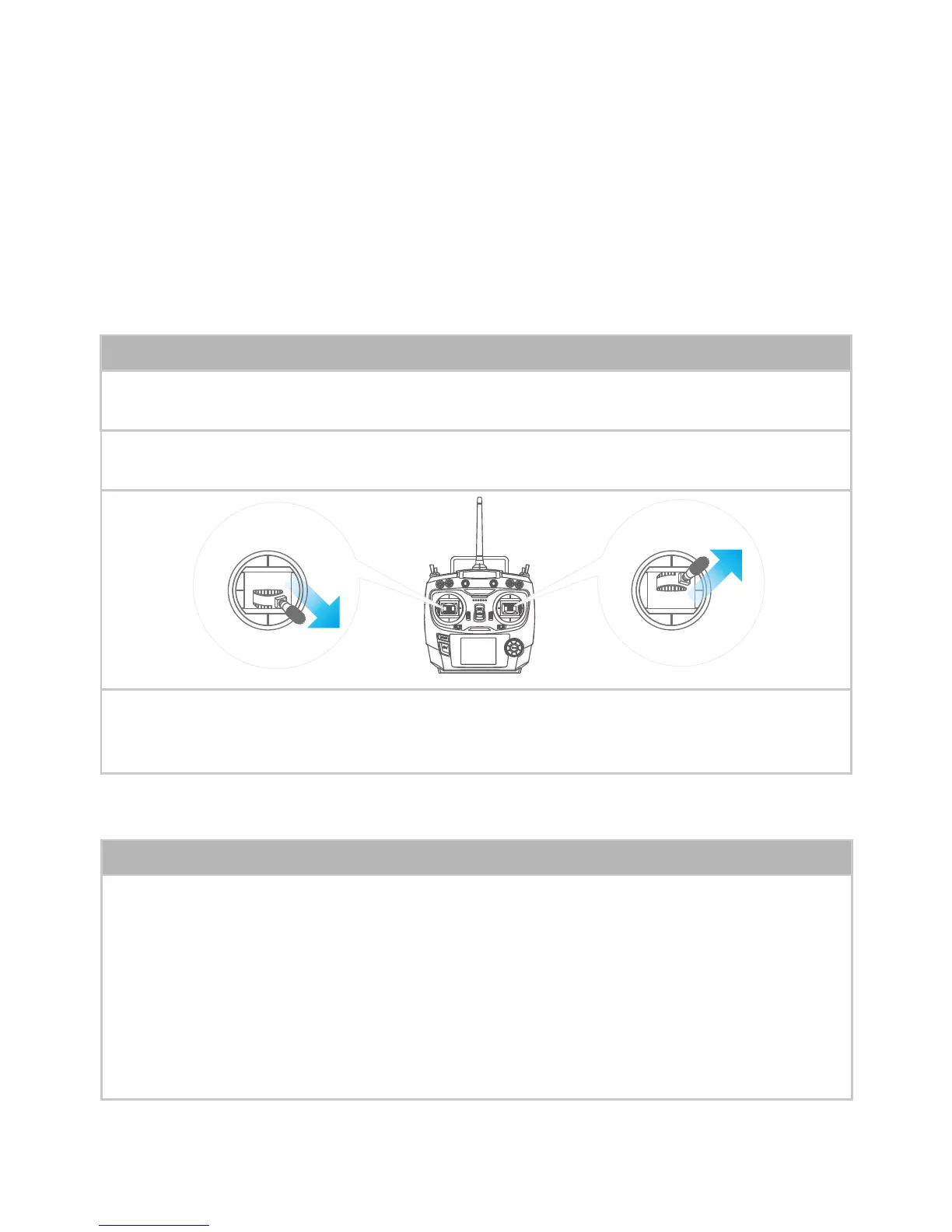 2. Pull left joystick to right-lowest 45°, push right joystick to right-highest 45°as below picture: