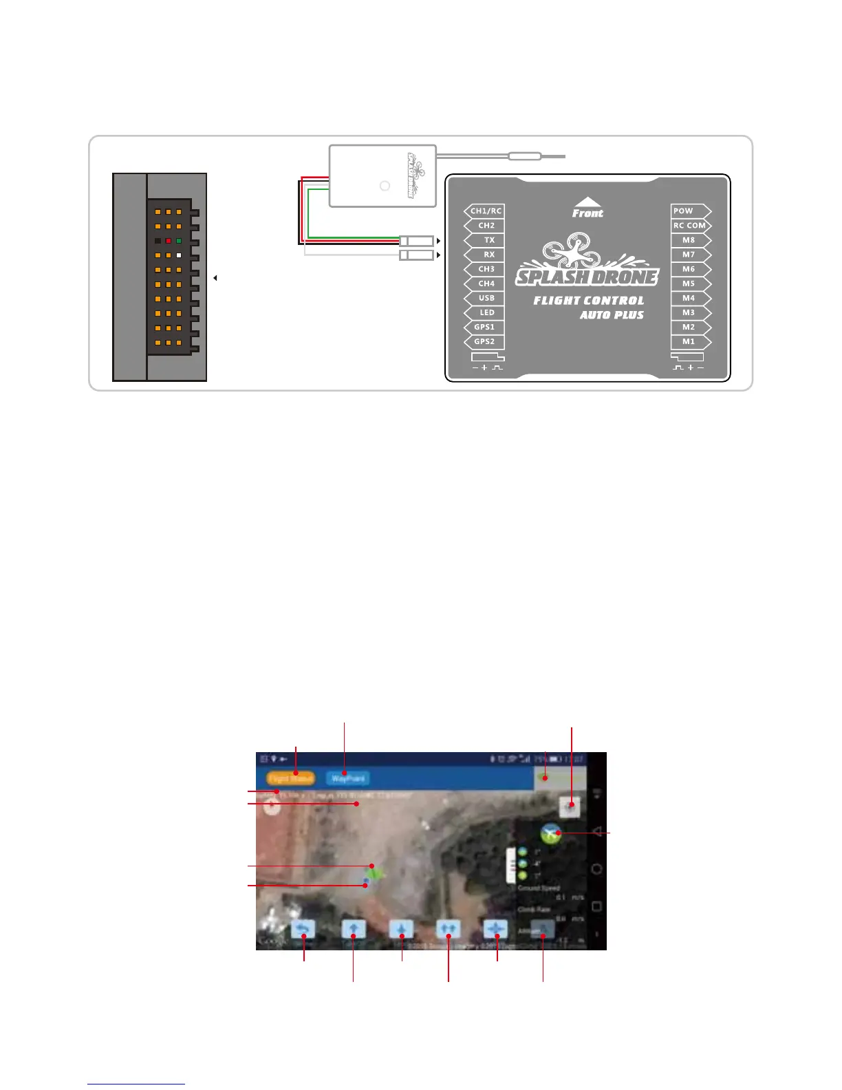 on-board transmitter terminal connects to the "TX" & "RX" channel of ight controller, and communicate