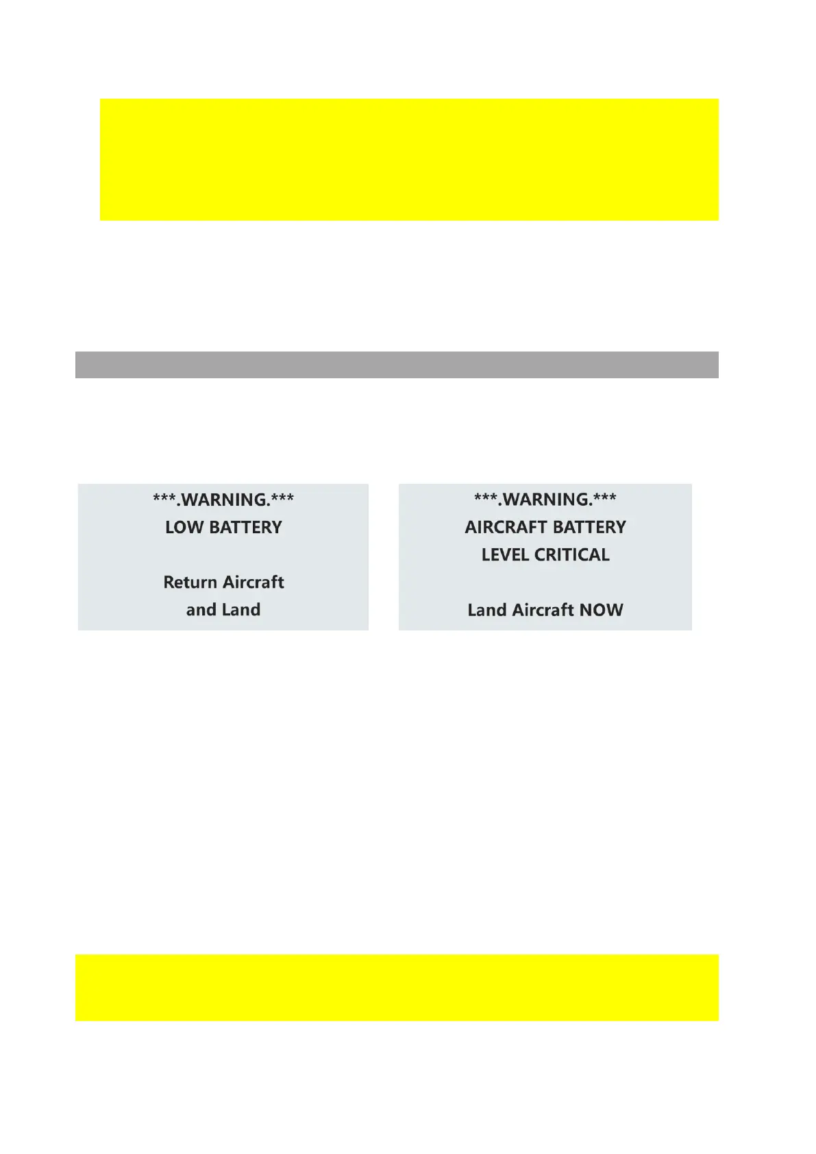 • Do not fly the drone with battery voltage below 12.0 volts.