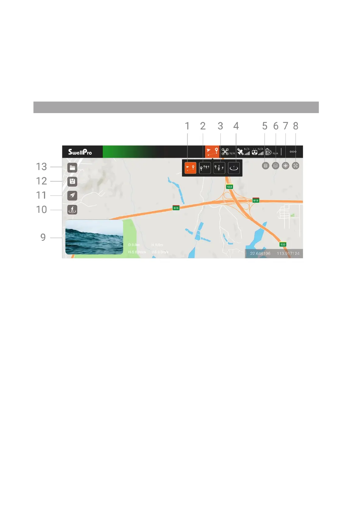 Select several waypoints on the map, the SplashDrone 4 will fly in a route through