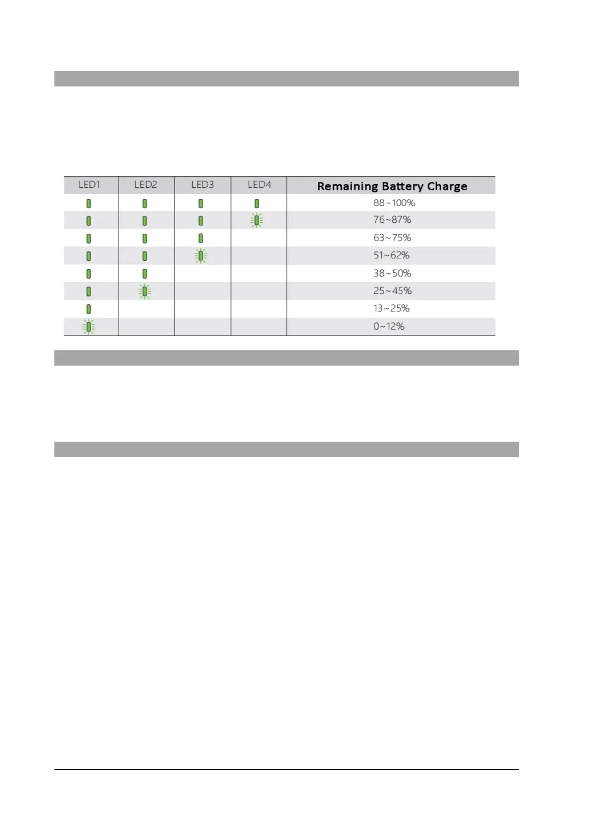 The battery level LEDs on the battery pack allow you to check the state of charge of the battery quickly