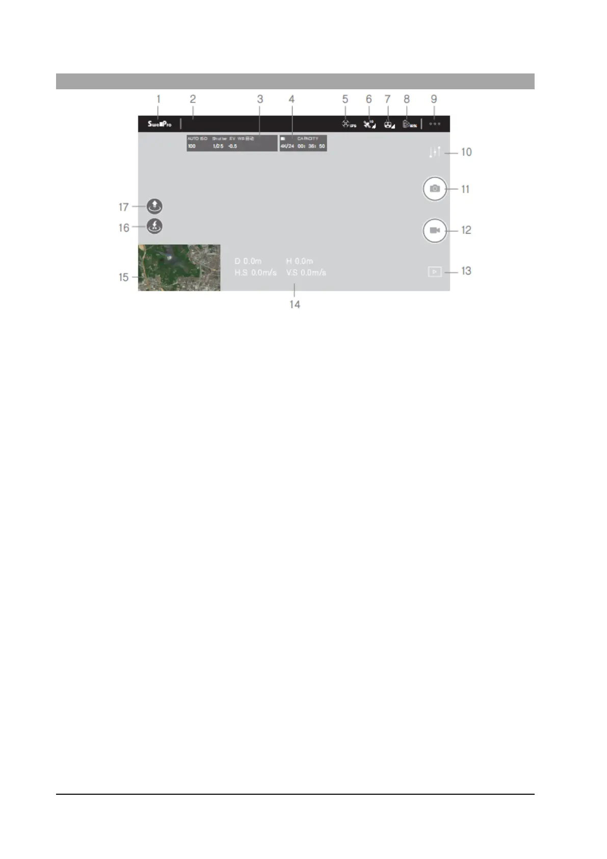 17. AUTO take-off: Tap to automatically take off and hover at a height of 3 meters.