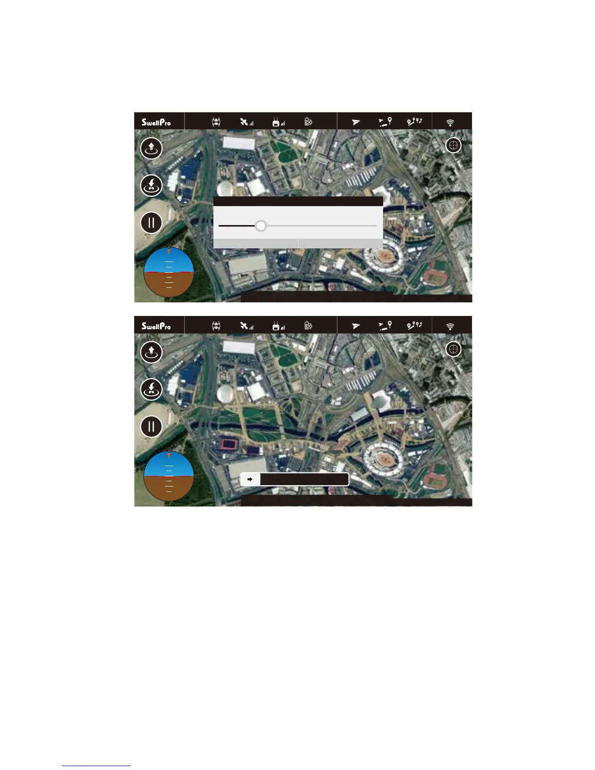 controller or click the “takeoff” button on the APP, set the take off altitude and then slide to unlock, the drone