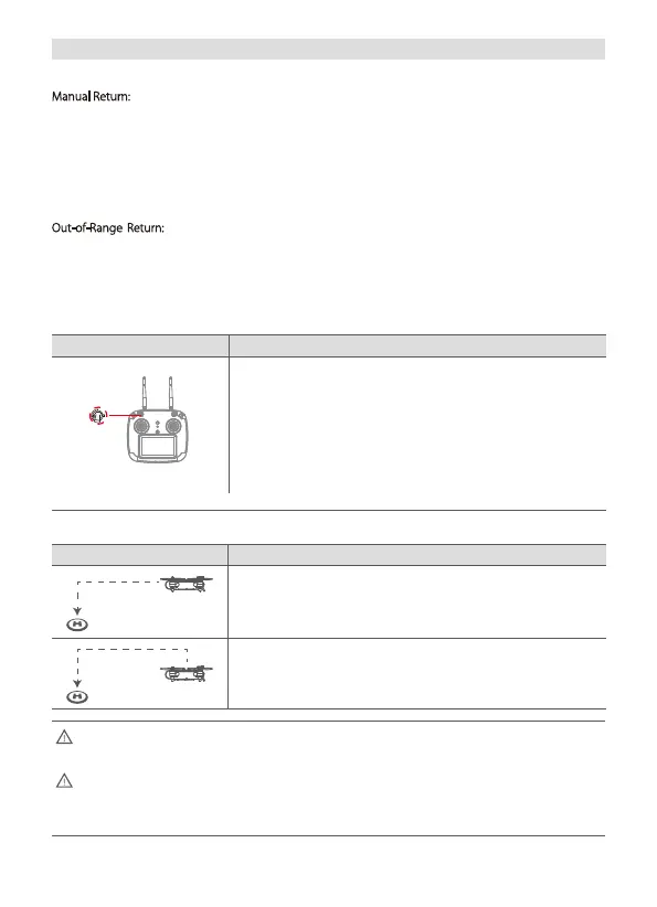 flight, if you operate the joystick, the aircraft will stop returning. If you stop operating the joystick, the aircraft