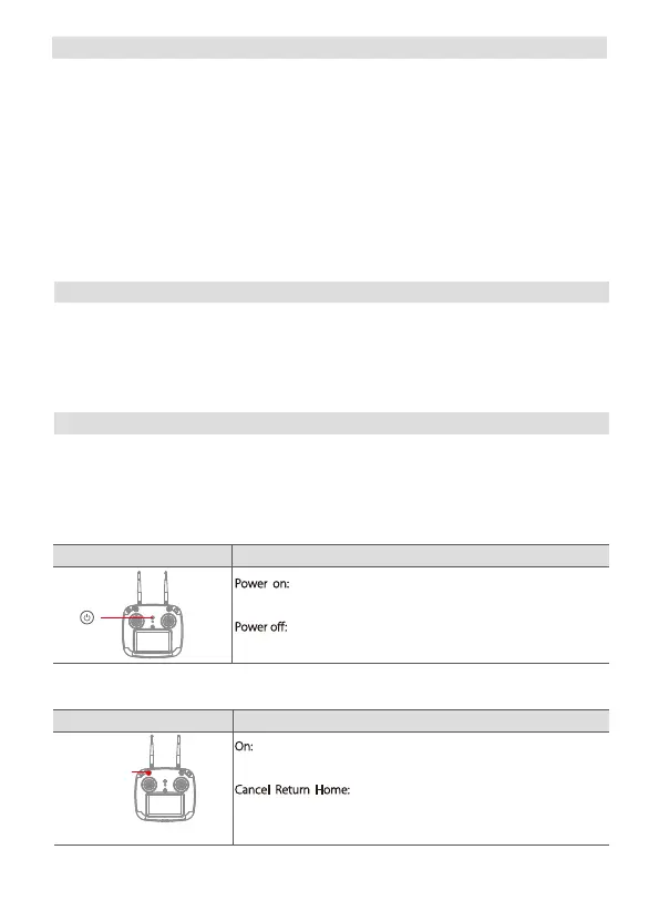 The aircraft enters the return state, and the FPV screen will display “RTH”.