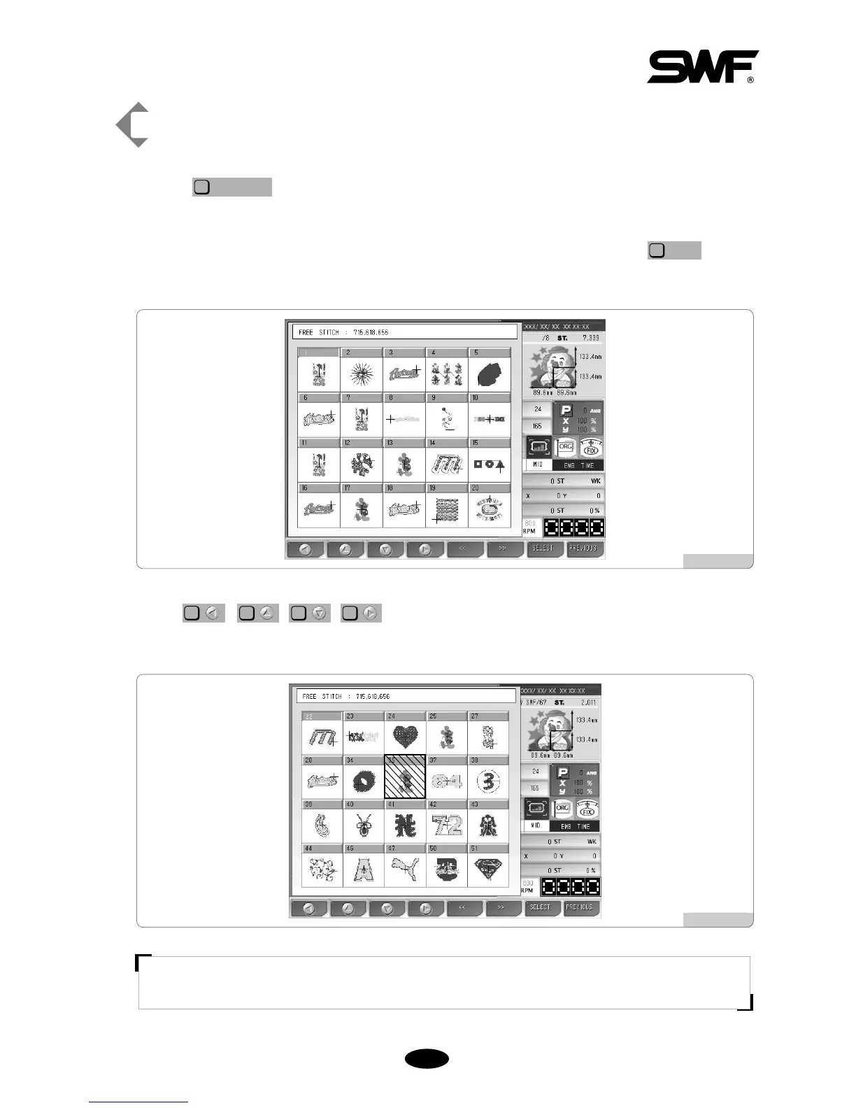 screen displays the room numbers and embroidery designs. Each screen shows up to 20 designs. The design we