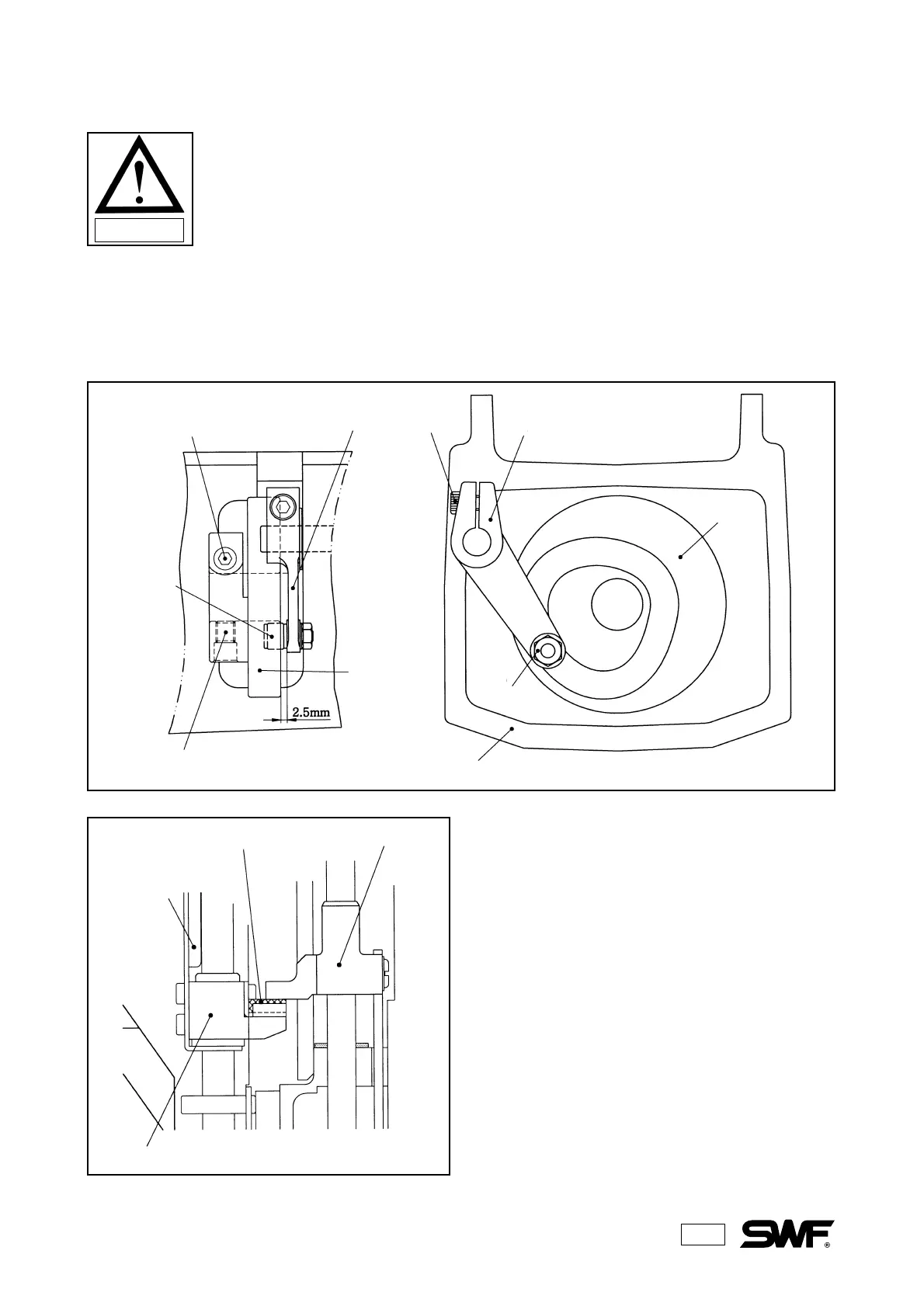 1) Unscrew all the jointed screws of the presser foot driving cam and the small driving lever. Turn the hand