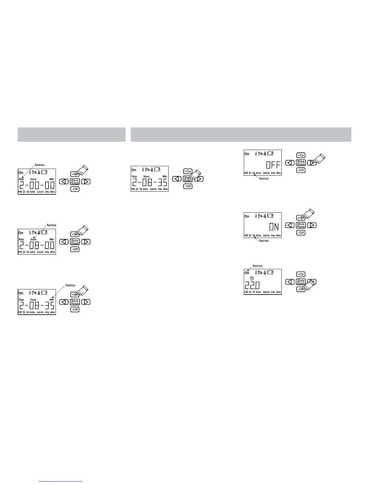 2. Press the +/On button. Day flashes. Use +/