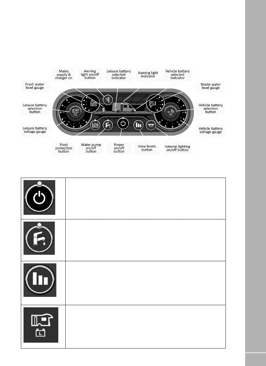 Leisure Battery Button. To select the Leisure battery as the source of power,