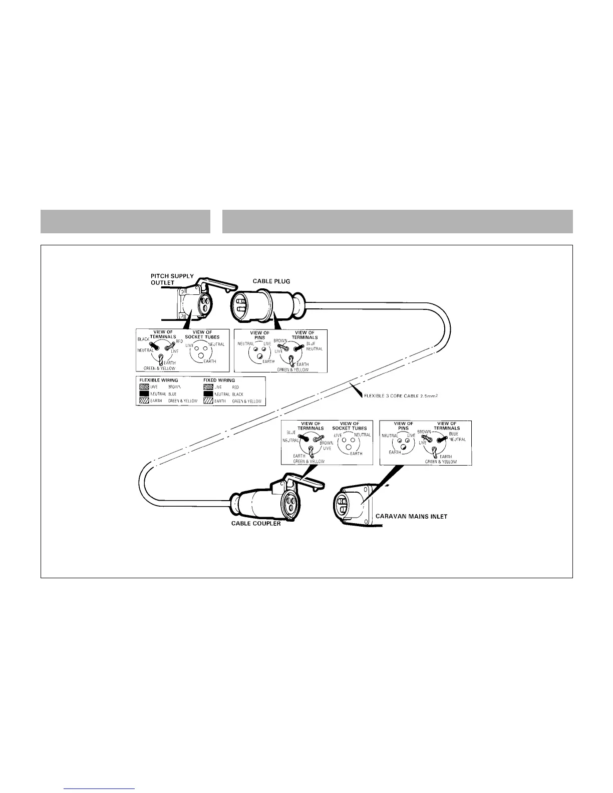 WIRING OF CONNECTING CABLE AND CARAVAN MAINS INLET