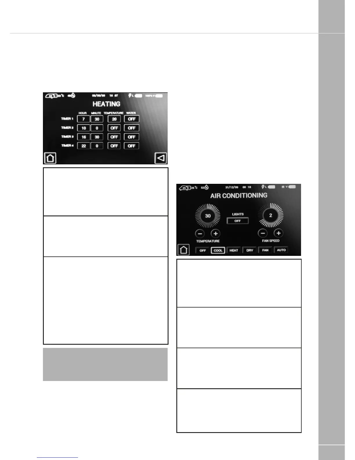 Heating timer screen