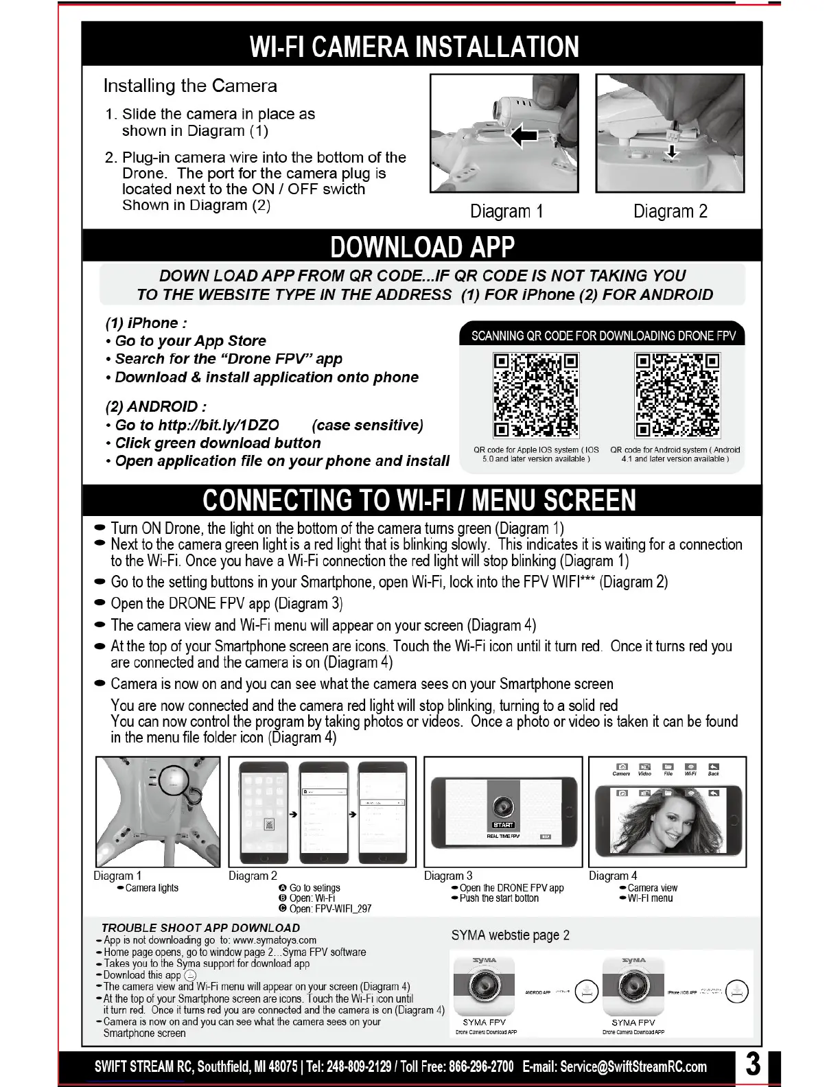 Swift Stream Z-9 Drone - Wi-Fi Camera and App Connectivity; Wi-Fi Camera Installation; Drone FPV App Download Instructions; Connecting to Wi-Fi and Using the FPV App