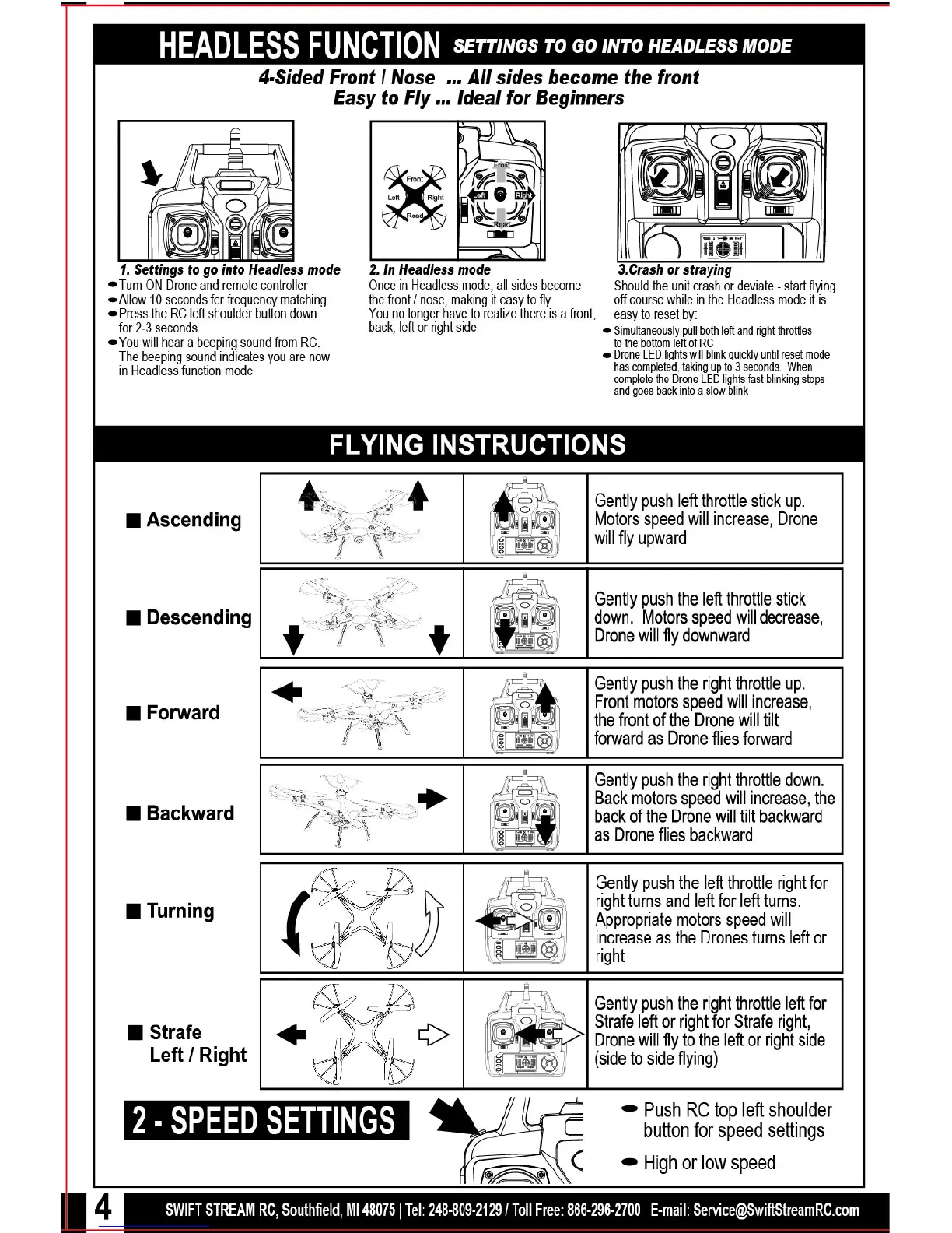 Swift Stream Z-9 Drone - Drone Flight Modes and Controls; Headless Mode Operation; Basic Flying Instructions