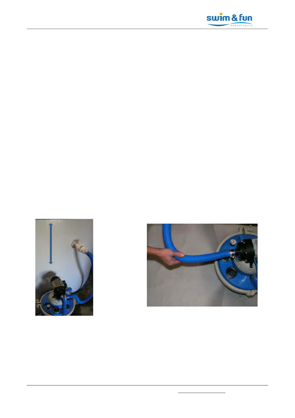 Before first use the hoses must be primed in order to fill the sand filter and hoses with water. Lift the