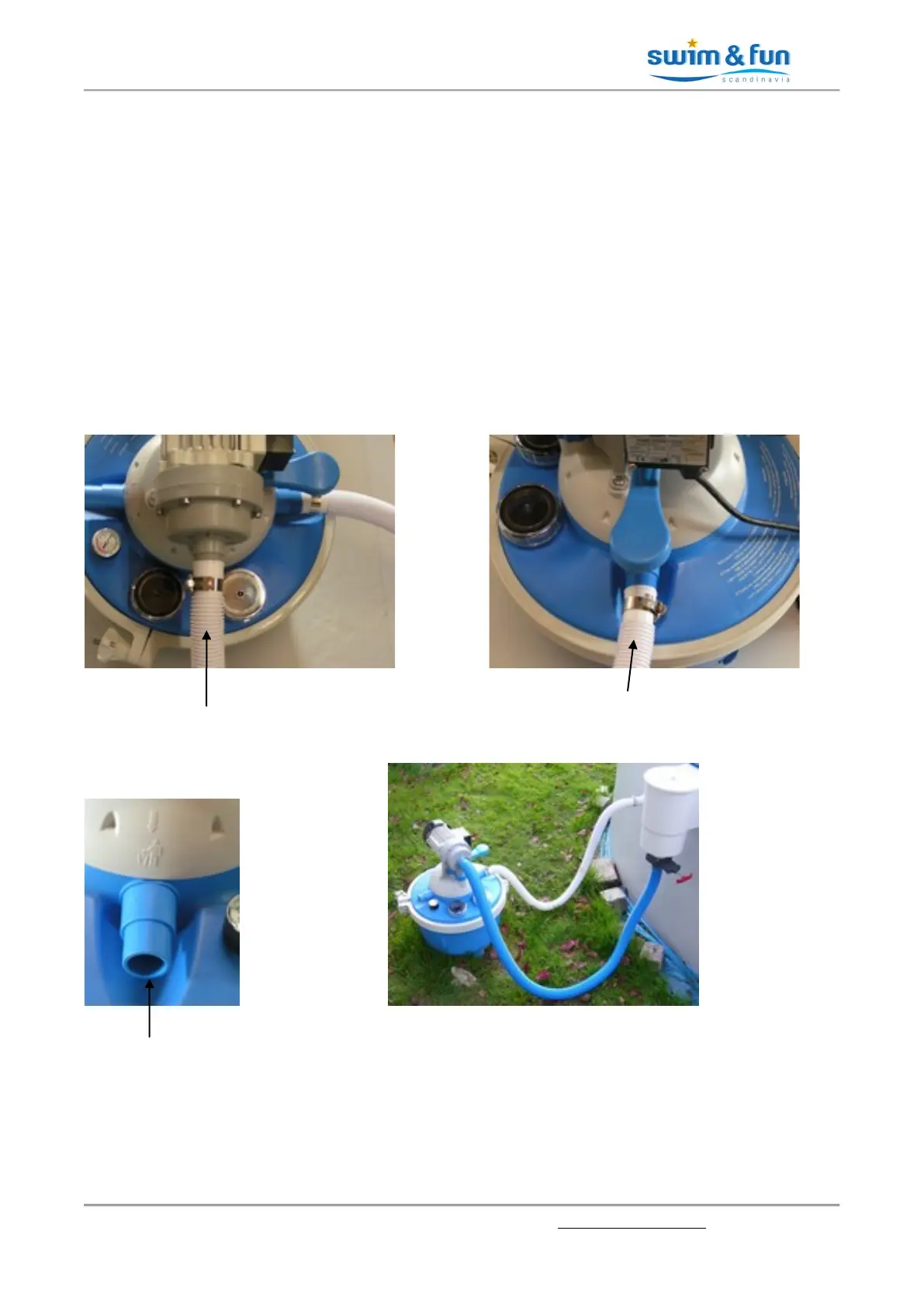 the skimmer and the pool inlet coupling. This facilitates handling when the filter tank has to be
