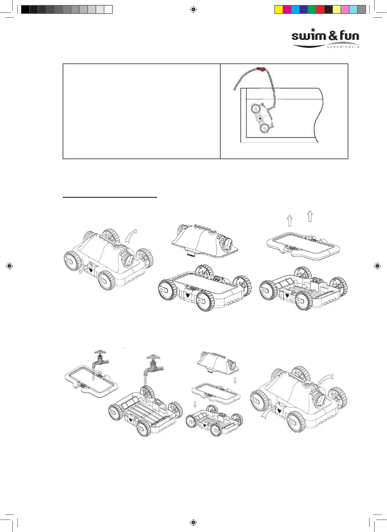 Vask lterbakken og chassis. Derefter kan robotten samles igen. Tryk for at låse.