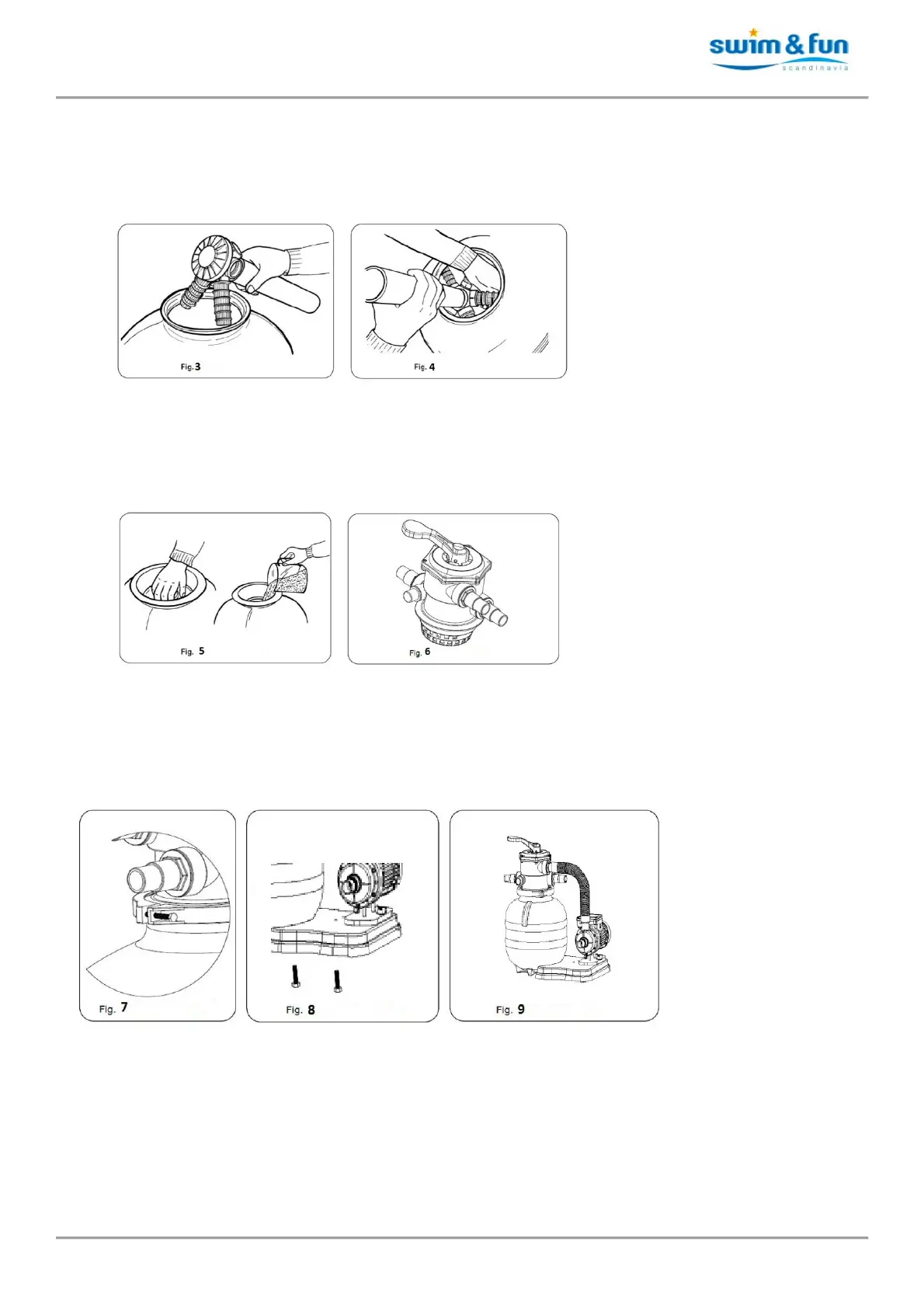 påfyldning. Vær sikker på at returrøret står absolut centreret i filtertanken. Fyld herefter tanken 3/4 op med sand. Se