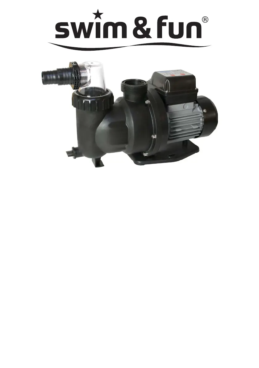 If your Swim & Fun Swimming Pool Pump isn't priming correctly or is running noisily, it could be due to several reasons. First, ensure there's enough water supply and that the suction line isn't leaky; seal any leaks and tighten screw fittings. Also, the suction head might be too high, so observe the maximum suction head and consider installing a check valve, filling the suction line with water. A blocked suction strainer or check valve could also be the cause; clean or replace them if needed. Lastly, water leaks between the motor and pump may require replacing the Duocone seal.