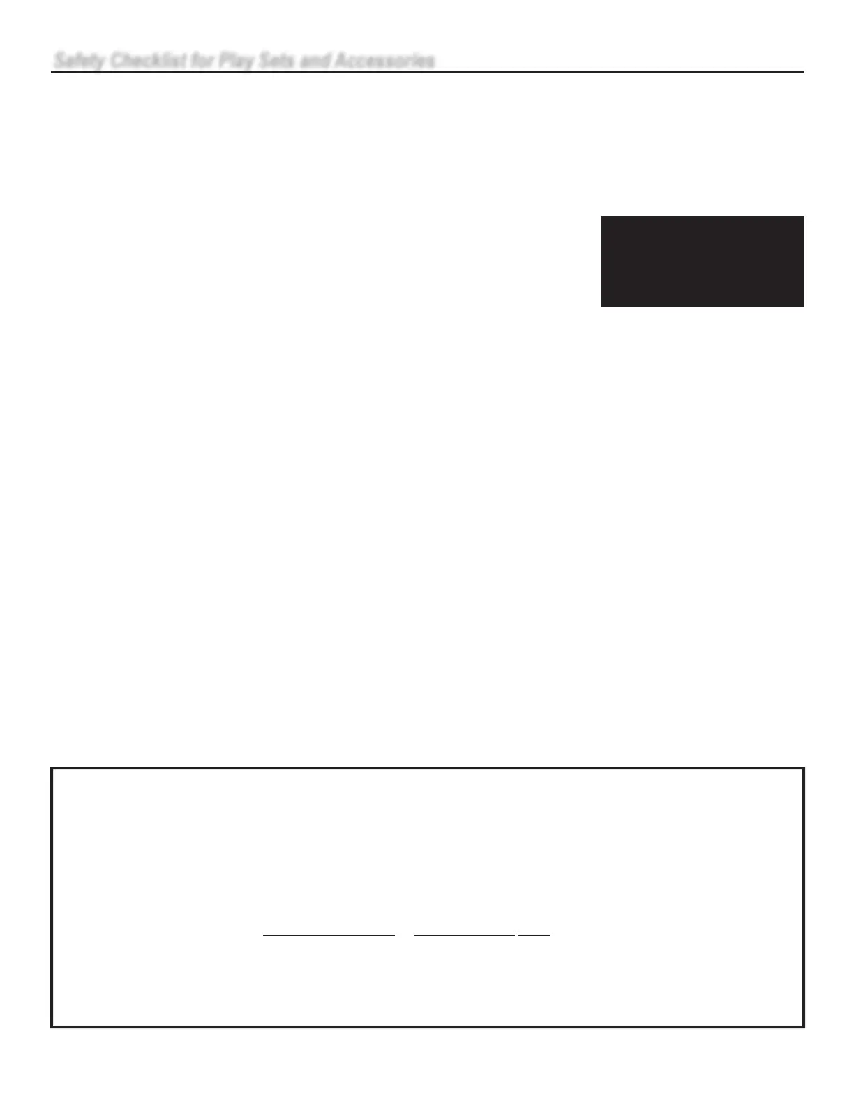 Not to attach items to the playground equipment that are not specifi cally designed for use with the equipment such as but not limited to, jump ropes, clotheslines, pet leashes, cables and chain.